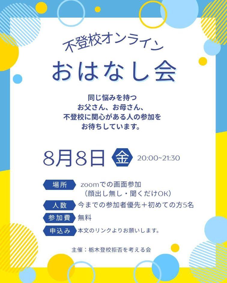【対 象】不登校でお悩みの親御さん、不登校に興味がある方