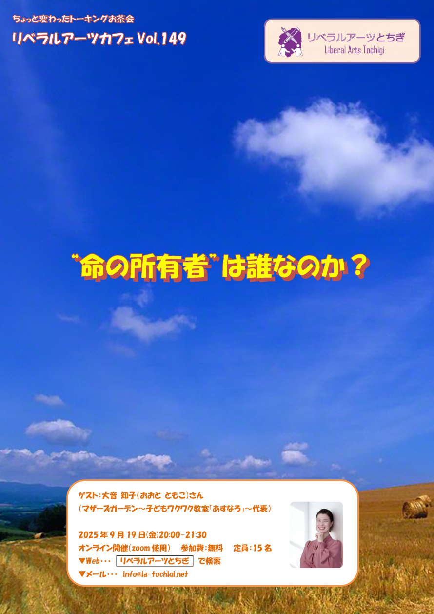 2025/09/19(金) リベラルアーツカフェ vol.149 テーマ:“命の所有者”は誰なのか?