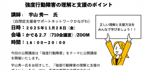 今回の公開講座は「強度行動障害」をテーマに公開講座を開催いたします。