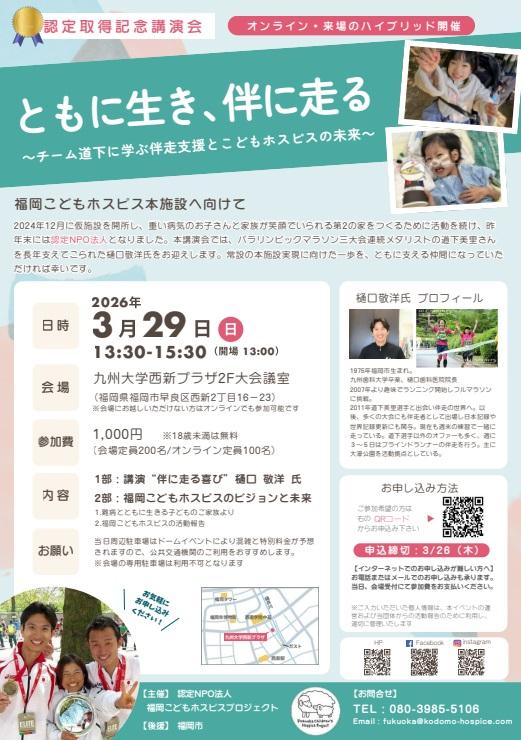 2026/03/29(日) 認定取得記念講演会「ともに生き、伴に走る」 @認定NPO法人福岡こどもホスピスプロジェクト